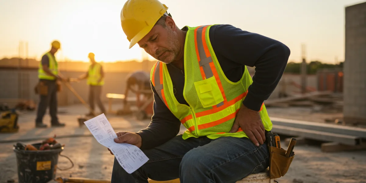 Report the injury to your employer immediately and seek medical attention. Document the incident thoroughly, including the date, time, location, and any witnesses. Then, consult with a workers’ compensation attorney as soon as possible.
